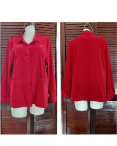 Blazer rojo terciopelado y elegante. Elegante y bello, tela exterior terciopelada, tono rojo. Lucirás hermosa, elegante y formal. Tiene dos pequeñas bolsas al frente. Tela 97% poliéster. Mide de axila a axila: 56 cm, largo: 68 cm.