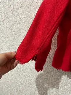Blazer rojo tweed. Lindo blazer color rojo, viene con pequeños y discretos broches para poder cerrarse.Tiene un detalle en la parte del hombro que está marcado en la primera y ultima foto.