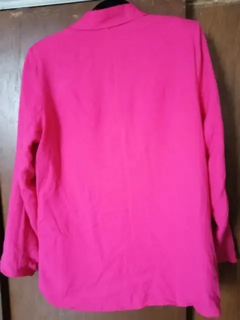 Bonito y combinable blazer rosa barbiTalla G marca cklassSueve al tacto y buena calidad.Hombros 42 cmLargo 76 cmManga 63 cm