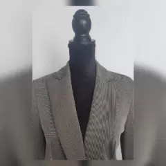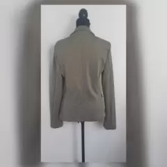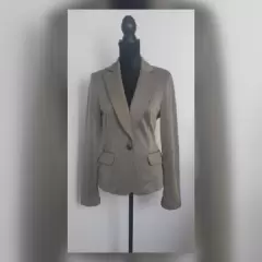Blazer tradicional color TAUPE RAVEN, cuello clásico c/solapas, cierre p/botonadura, 2 bolsos vivo c/solapa, manga larga y forro interior. Talla 10. Dimensiones cms: 42 hombro, 50 axila, 42 cintura, 52 zona baja, 62 largo, 62 largo manga. 98% poliamida, 2% elastano. P/lavado en seco.