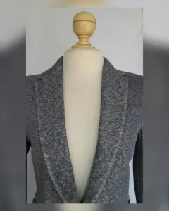 Blazer color AZUL PETROLEO JASPEADO (luce entre azul y gris c/hermoso degradado), cuello pico c/solapas, cierre p/botonadura tipo vintage, manga terminada en botonadura, 2 bolsillos delanteros vivo c/bies y forro interior. Talla L. Dimensiones cms: 40.5 hombro, 50 axila, 44.5 cintura, 58.5 zona baja, 62 largo, 67 largo, 65 largo manga. 95% algodón, 4% viscosa, 1% poliéster. P/lavado en seco.