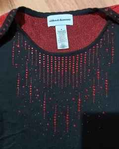 Blusa-Sueter NUEVO. Sueter con blusa y detalle de pedrería en el frente. Sueter pegado a la blusa, simula ser un blazer con su blusa, color rojo con negro. Con esta prenda en poco tiempo ya estarás lista para salir 😉
