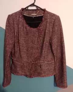 Bonito blazer con cierre. Bonito blazer con cierre, tiene cierre frontal , en las mangas y bolsas. Nuevo sin etiqueta, talla 4, tonos negro, rojo, rosa,rojo y detalles de hilo color plata.