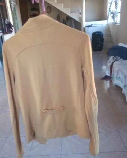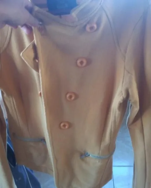 Bonito saco cafe. Es un bonito saco entre color café claro y naranja, se ve super lindo, dice talla M, pero también queda bien a una S, único detalle de uso...