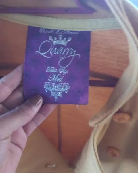 Es un bonito saco entre color café claro y naranja, se ve super lindo, dice talla M, pero también queda bien a una S, único detalle de uso...