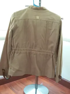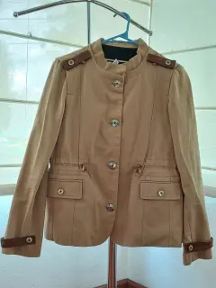 Chaqueta Café claro de Purificacion García, talla M. Uso sport y semi formal.Con aplicaciones en piel, bolsos delanteros