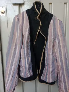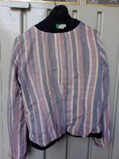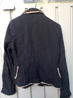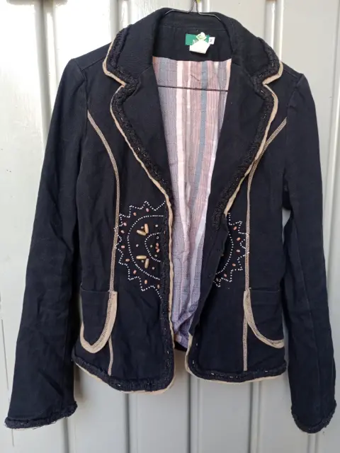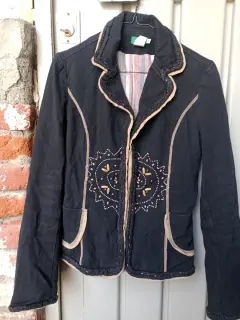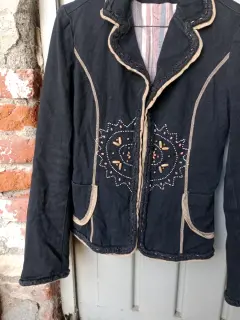 Chaqueta de dama. Chaqueta negra con detalles de pedrería decorativos,bolsas pequeñas enfrente talla mediana, manga 23cm. largo 21cm. ancho de hombro a hombro 15cm.