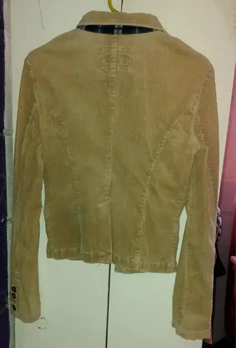 Es una chaqueta semi formalColor beige-mostazaTalla: XS1 puesta Sin detalle ni descolorida.Bonita y cómoda, fresca.