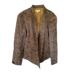 Coldwater Creek blazer. Motivo a flores beige, solapas de muesca, cierre con botones en la parte delantera, manga larga, dos bolsillos delanteros, dobladillo asimétrico y forro completo.Composición: Apariencia: 52% algodón, 45% poliéster, 3% spandex . Apariencia: 100% poliéster