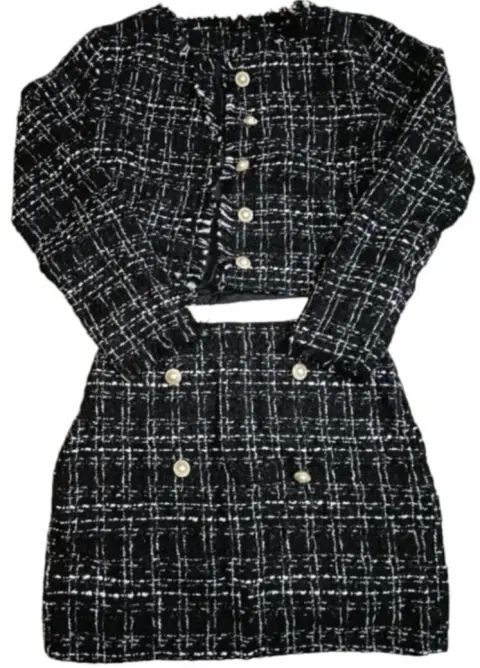 Conjunto cuadriculado blazer + falda. Perfecto para las fiestas que se vienen! 🎄Está hermoso, nunca se usó, siempre estuvo guardado en su empaque, muy elegante. Queda a talla Ch/M