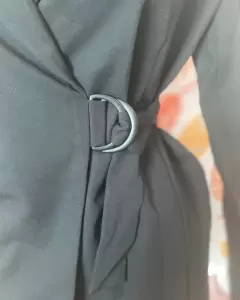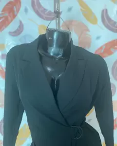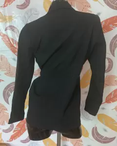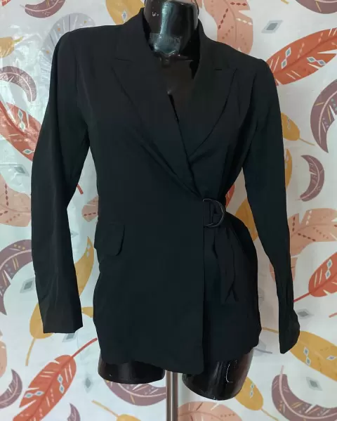 Bonito saco negro, con un toque diferente al abrocharse. Marcado como Mediano, pero lo veo amplio.Acepto ofertas razonables en compras inmediatas.