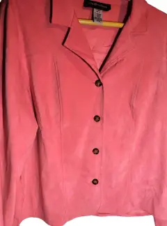 Lindo blazer rosa está en perfecto estado, el material es poliéster con elastano lo cual hace que estire un poco .