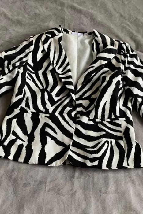 Blazer Zebra, talla mediana con bolsas en la parte de enfrente, con forro. Ropa Americana