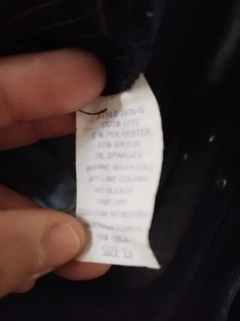 Saco negro con rayas blancas, marca Moving On!, Talla 13, con bolsas al frente.