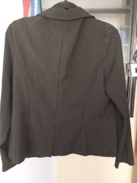 Saco. Saco negro con rayas blancas, marca Moving On!, Talla 13, con bolsas al frente.