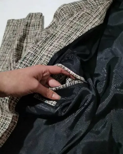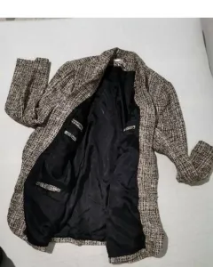 Saco sin ningún detalle se uso no mas de tres veces, es muy calientito, la tela de afuera es gruesa y tiene forro y muchas bolsas secretas por dentro