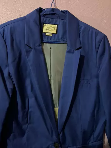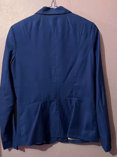Saco formal azul marino talla M. Tiene todos sus botones, tiene dos bolsas y en los puños viene con una abertura en V.