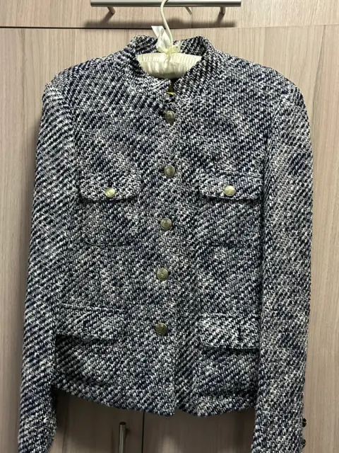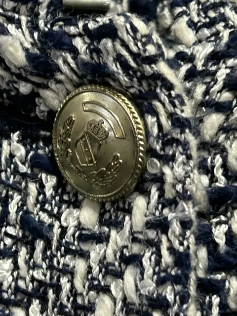 Chaqueta azul marino rayón, algodón, poliéster talla mediana, estilo lady Di, botones dorados con gravado