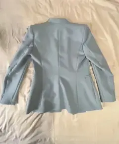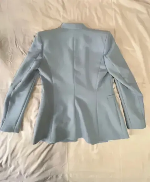 Saco color baby blue, con forro, manga larga, broche al frente,