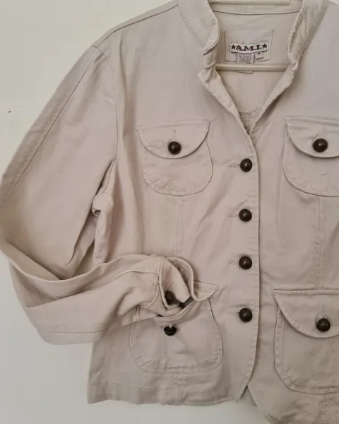 Saco beige stretch!! super horma curvilinea!!. Saquito hermoso de moda!!! super calidad excelente!! de algodon y strech!! saco de gabardina curvilíneo para hormar el cuerpo padrisimo!!medidas: 50 axila axila/largo: 56cm!!/ talla: m queda a tallas 30,32,34!!casi nuevecito!!