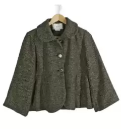 Saco café con beige, con cuello redondo y botones al frente. Tiene mangas 3/4 súper lindo y elegante. Súper favorecedor y combinable. Talla L