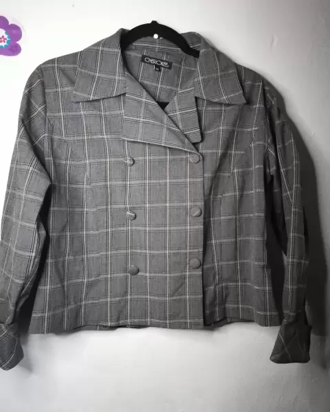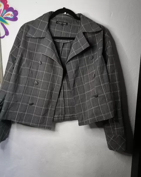 Saco corto tono gris linea café fresco. 💚 Sin detalles, te va a encantar!!* Compra más artículos de mi perfil y mejoro el precio* 💋Elige en todo mi clóset y combina lo que quieras 😎Si es tu primer compra busca en la última imagen el código, ingresalo antes de pagar 😉