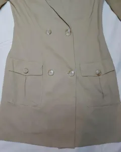 Saco cruzado tipo gabardina color camello. Hermoso saco largo cruzado con hombreras pequeñas, tiene un color súper combinable, te va a encantar tiene bolsas en frente.Mide de largo 86 cm. Es fresco. Dice talla 32 queda a S y M. Tiene dos jaloncitos que casi no se ven!