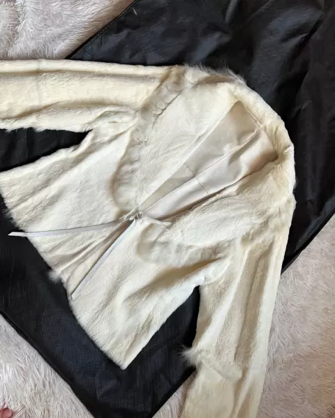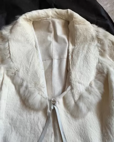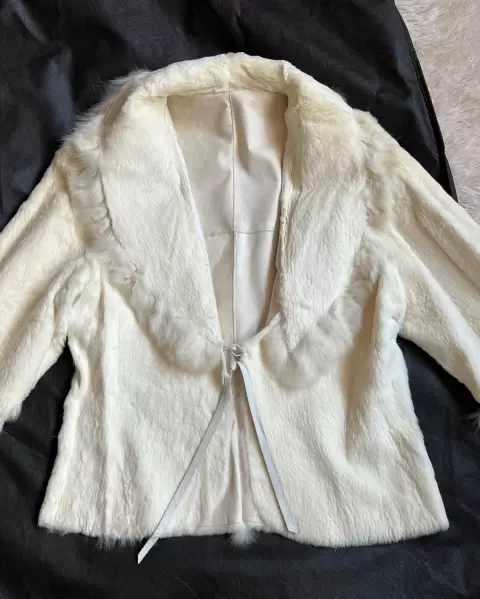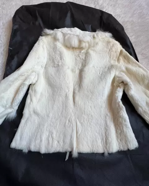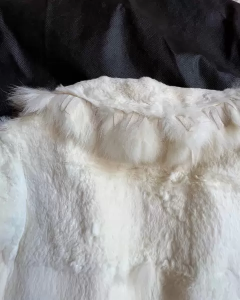 Saco de piel de conejo reversible, de un lado la piel de conejo, con el pelito largo y del otro la piel blanca