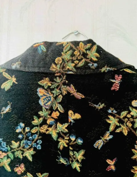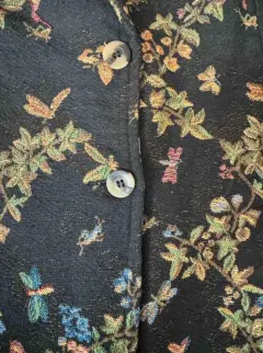 Los detalles floreados siempre son tendencia todas las temporadas!! Hermoso saco tipo Blazer floreado con un poco de relieve en fondo negro. Está forrado y es ligeramente acinturado. El único detalle es que no tiene talla. Ideal con pantalón negro o azul con un top verde. Más opciones en mi clóset.
