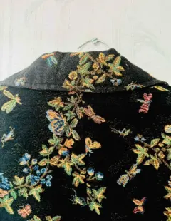 Saco flores relieves negro.. Los detalles floreados siempre son tendencia todas las temporadas!! Hermoso saco tipo Blazer floreado con un poco de relieve en fondo negro. Está forrado y es ligeramente acinturado. El único detalle es que no tiene talla. Ideal con pantalón negro o azul con un top verde. Más opciones en mi clóset.