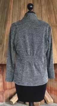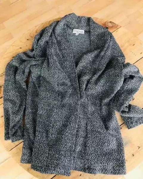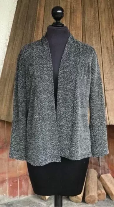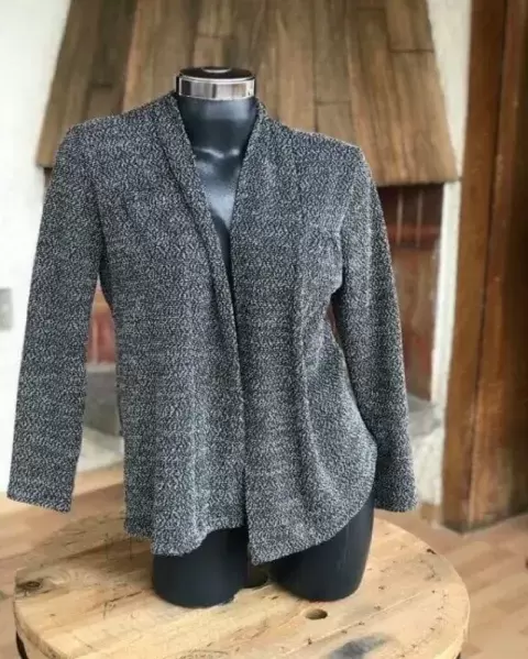 Padrísimo saquito abierto gris oxford con destellos blancos horma muy padre es grande pero puede quedar para chica y mediana también excelente calidad y precio
