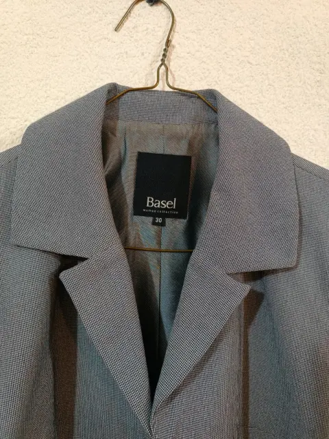 Saco con forro, color gris, corto, ajustado tela ligera, con hombreras