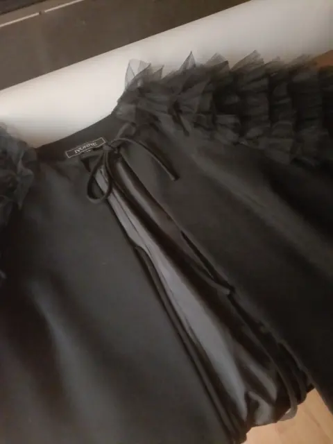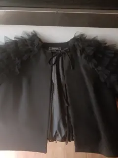 Excelente saco talla 12 reducida aproximadamente talla 10 excelente condición en negro manga corta de olán padrísimo para usarlo en fiesta o en oficina!