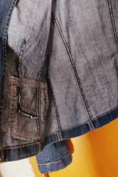 Bonita chamarra tipo saco de mezclilla , hecho 97% mezclilla y 3% spandex, talla M, mide 44cm de hombro a hombro x 48cm de axila a axila y 62cm de alto. Seminueva en buen estado