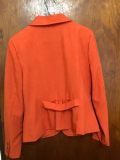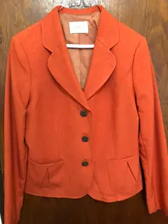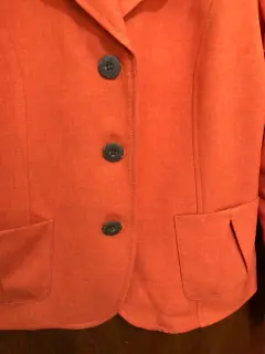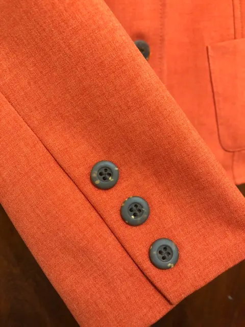 Elegante saco naranja con botones café Bolsas frontales que lo hacen muy práctico Cinturilla trasera que moldea tu cuerpoMedidas:Hombro 40cmAxila 48Cintura 43Manga 61Largo 58Talla 11Viene con forro