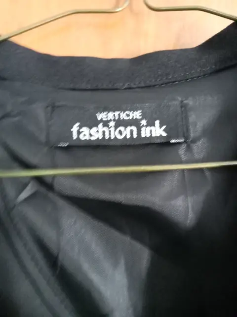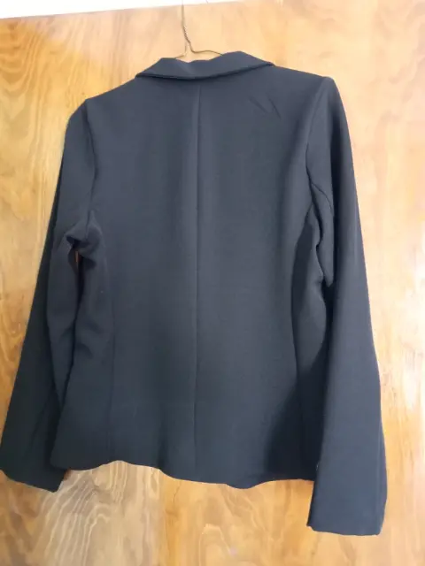 Saco sastre color negro, tiene botón al frente y bolsas falsas, tiene hombreras, de manga larga.