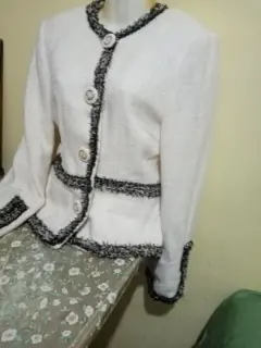 Saco tipo chanel en excelente estado color blanco y negro talla m