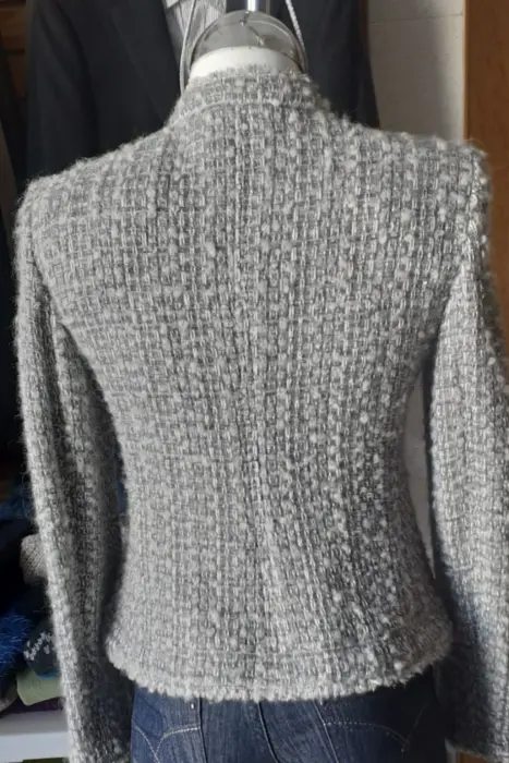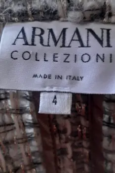Saco tweed con detalles metálicos. Talla 4= SBusto: 83.82 cmCintura: 62.23 cmCadera: 88.9 cmHecho en Italia- 61% lana virgen,15% viscosa, 11% alpaca, 7% poliamida y 6% poliésterEl único detalle que tiene es que la etiqueta de los materiales, está rasgada, pero la prenda no tiene detalles.