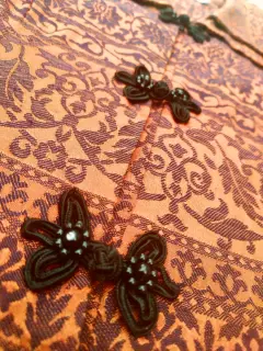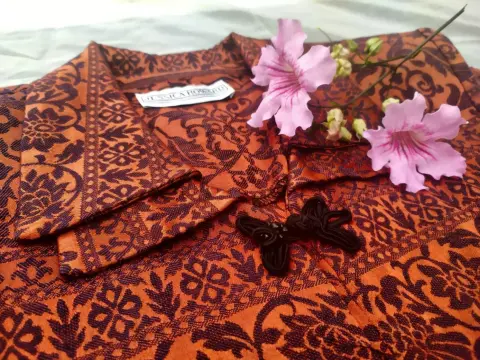 Saco naranja con doble solapa, hombreras, botones bordados con piedras negras, resalta tu figura.