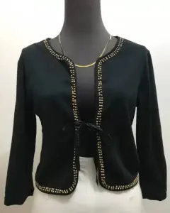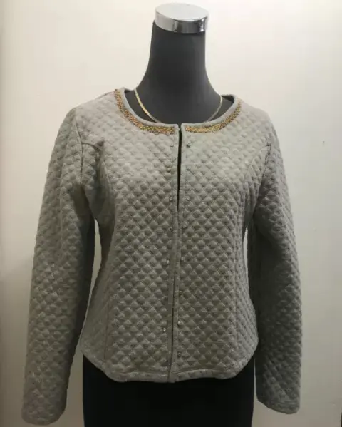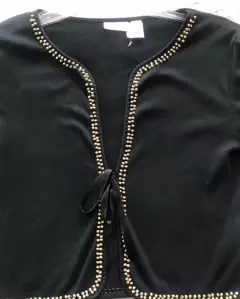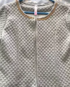 Saco capitonado color gris, talla M, con aplicaciones en cuello, marca Arlets.Torero azul marino con aplicaciones al detente y por la parte inferior espalda, talla M. Sin detalles ninguno. Excelente estado y fácil de combinar.