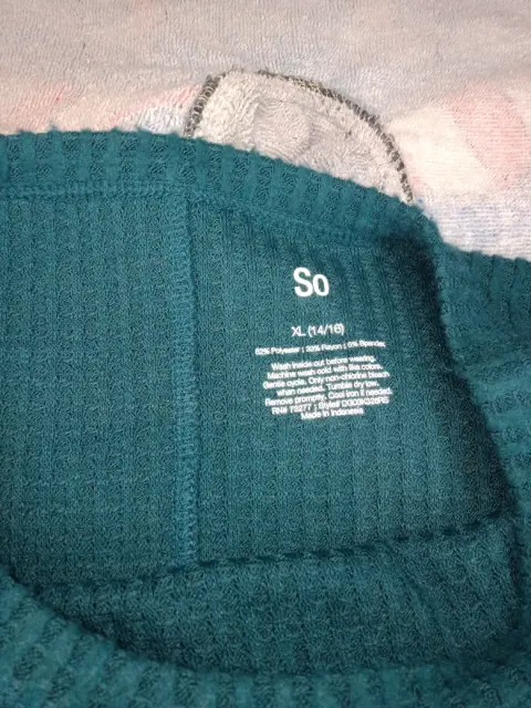 Suéter de la marca SO, de color verde oscuro.Dice talla XL pero yo le calculo una talla L o M, en buenas condiciones sin ningún detalle