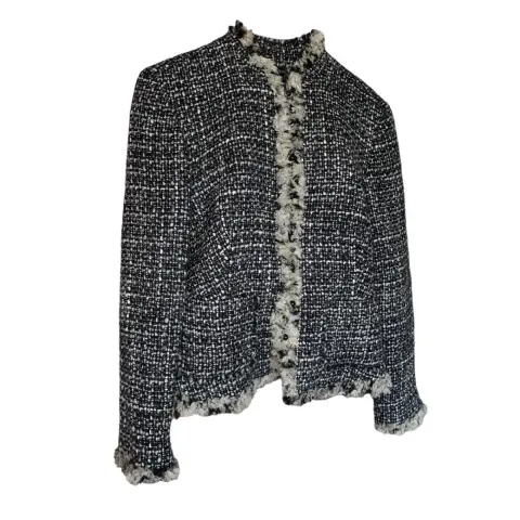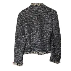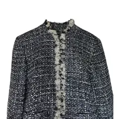 Valerie Stevens blazer. Diseño en tweed, botones en relieve, manga larga, puños y frente con pelo de lana para un acabado de lujo con botones, dobladillo recto y forro completo• Corte slim que impone tu figuraApariencia: 69% lana, 11% acrilico, 9% nylon, 9% rayon, 2% otras fibras