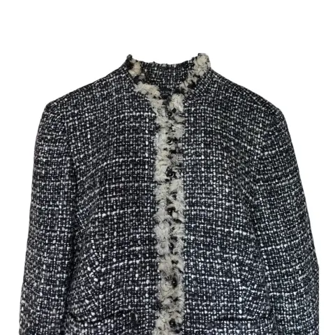 Diseño en tweed, botones en relieve, manga larga, puños y frente con pelo de lana para un acabado de lujo con botones, dobladillo recto y forro completo• Corte slim que impone tu figuraApariencia: 69% lana, 11% acrilico, 9% nylon, 9% rayon, 2% otras fibras
