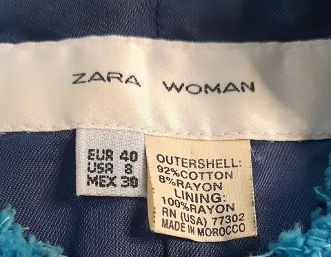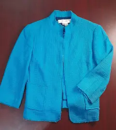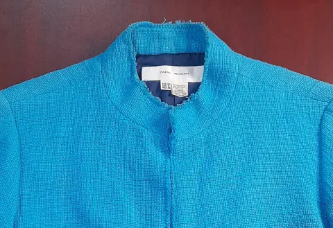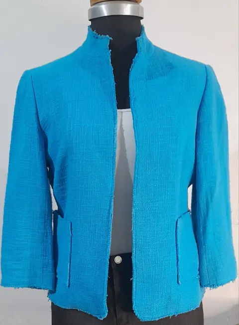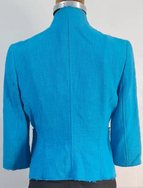 ZARA blazer corto para dama SEMINUEVO. Blazer corto para mujer, SEMINUEVO, marca ZARA, color azul turquesa, talla 30 (da una talla chica), manga 3/4, bolsas laterales, corte 92% algodón y 8% rayón, forro 100% rayón