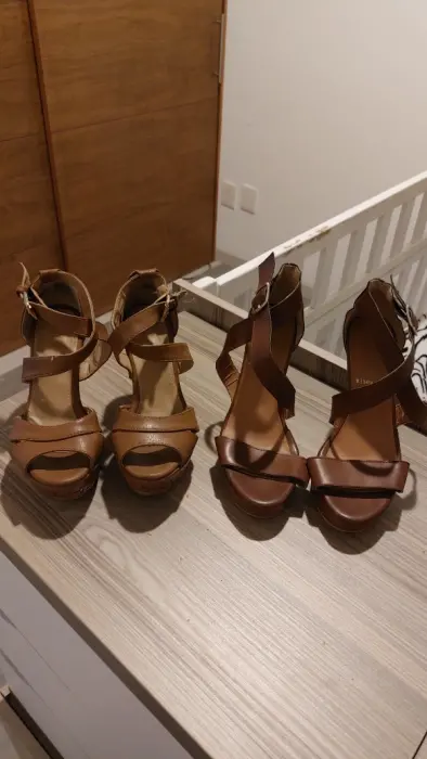 2 pares de zapatos -plataforma marca Jennifer Lopez talla#23 los de tacon color café son #23.5 y están un poco descarapelados de la correa por dentro(no afecta su uso) en fotos se muestra,ambos por $230