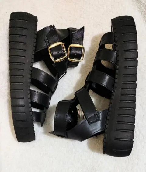 Padrísimas sandalias color negro, vinipiel diseño de gladiador romano doble correa con ebillas ajustables, suela plataforma 5cm es ligera muy cómoda. Mexicano Número #23cm. Si es tu primer compra en la App Código Promocional de descuento -$ en tu primera compra: lucyrmxXqQJ9