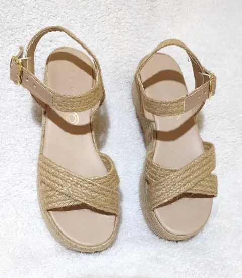 Hermoso huarache Yute natural estilo tiras cruzadas diseño plataforma muy ligera cómoda, de correa ajustable, suela que no pesa. Medida plataforma enfrente 5.5cm a tacón de 6.5cm . México número #24cm. Visita mi espacio para más modelos y numeración. Usa mi código promocional de descuento para tu primer compra dentro de la App copia y pega: lucyrmxXqQJ9