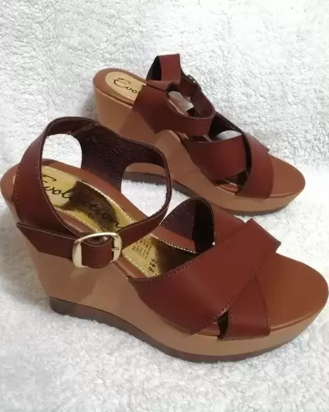 Huarache color café estilo tiras cruzadas diseño plataforma de cuña, de correa fácil ajustable, suela antiderrape no pesa muy ligero y cómodo. Medida plataforma al frente 3cm a tacón de 11.5cm . Mexicano acomoda #25cm. Visita mi espacio para más modelos y númeración. Usa mi código de descuento para tu primer compra dentro de la App.