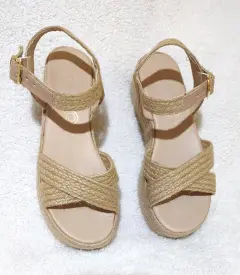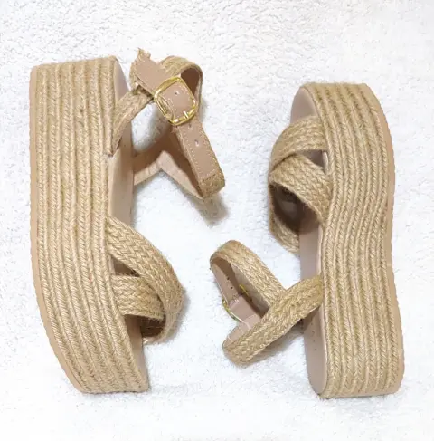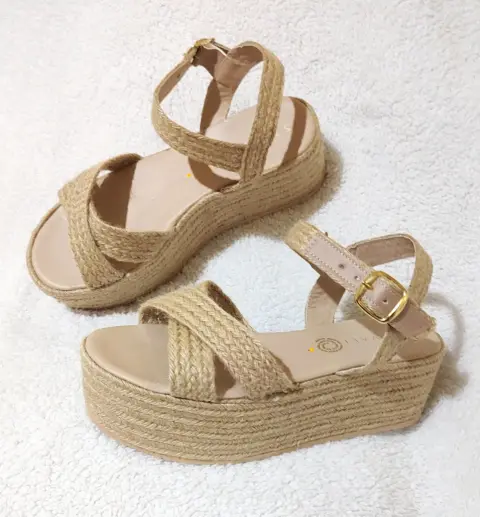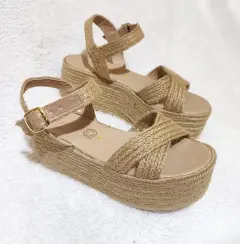 Hermoso huarache Yute natural estilo tiras cruzadas diseño plataforma muy ligera cómoda, de correa ajustable, suela que no pesa. Medida plataforma enfrente 5.5cm a tacón de 6.5cm . México número #25cm. Visita mi espacio para más modelos y numeración. Usa mi código promocional de descuento para tu primer compra dentro de la App copia y pega: lucyrmxXqQJ9