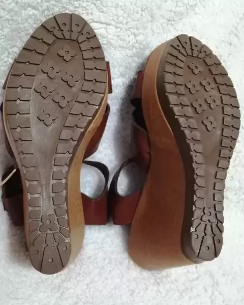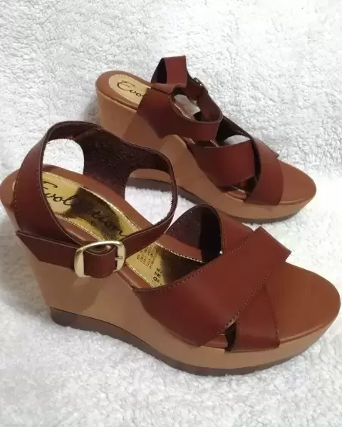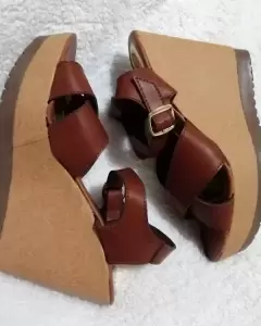 Huarache color café estilo tiras cruzadas diseño plataforma de cuña, de correa fácil ajustable, suela antiderrape no pesa muy ligero y cómodo. Medida plataforma al frente 3cm a tacón de 11.5cm . Mexicano acomoda #26cm. Visita mi espacio para más modelos y númeración. Usa mi código de descuento para tu primer compra dentro de la App